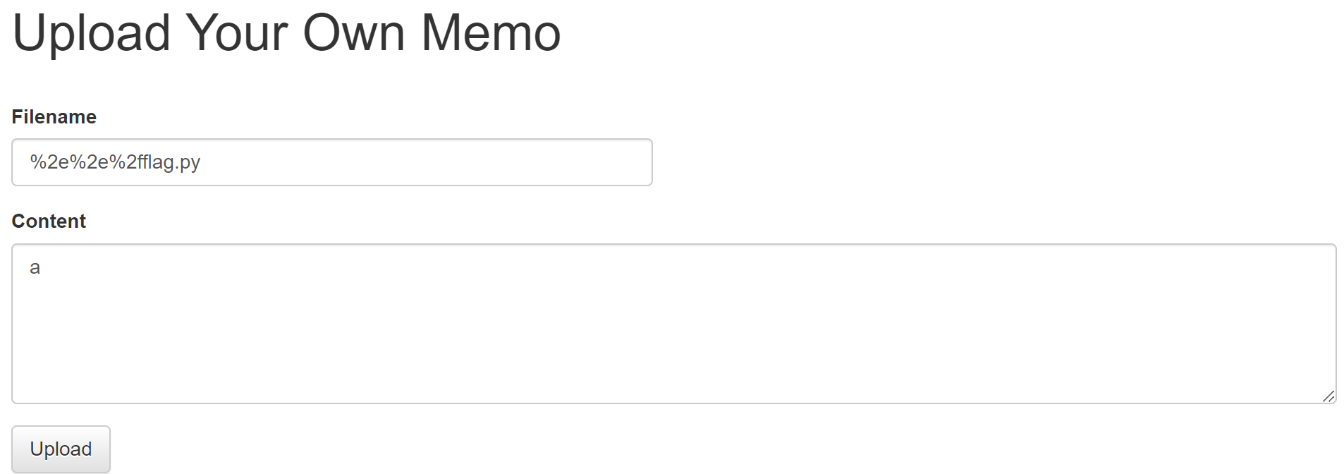 업로드된 %2e%2e%2fflag.py를 클릭하니 플래그 값을 확인할 수 있었다.