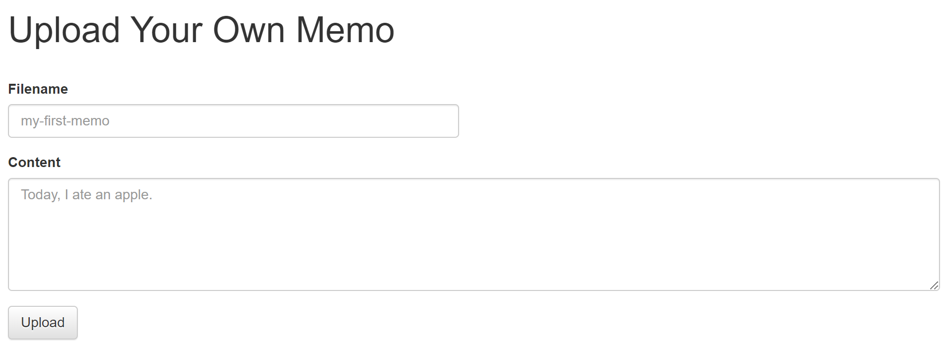 Upload My Memo 버튼을 누르게되면 아래와 같이 Filename과 Content를 입력할 수 있다.