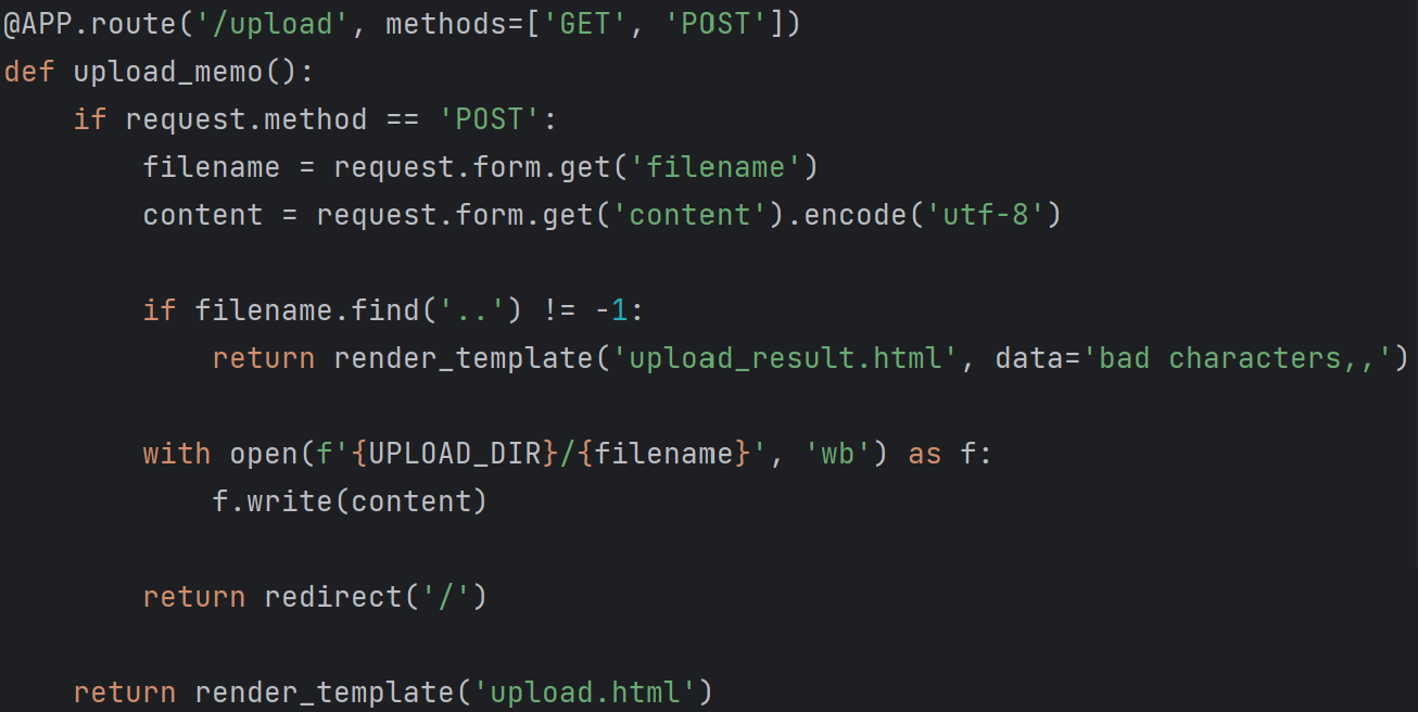 중간 filename 부분에 (..)을 필터링 해 'bad characters,,' 문구를 출력시키고 있다.