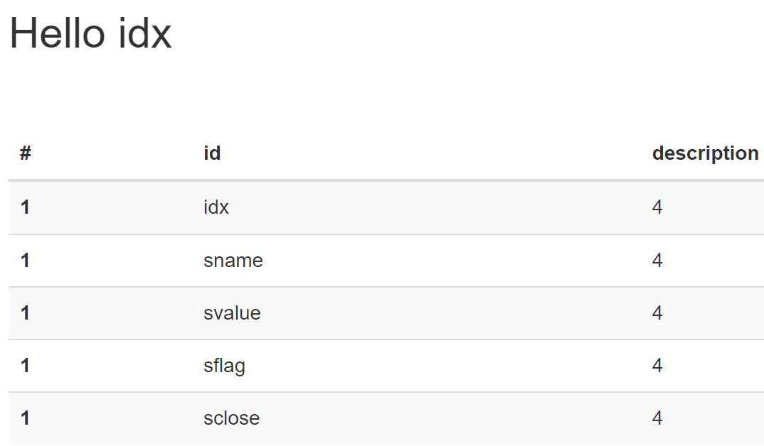 그 결과 총 5개가 출력됐다. 하지만 앞의 init.sql에서 idx가 pk라는 정보와 sname이 flag is라는 것을 얻었기 때문에